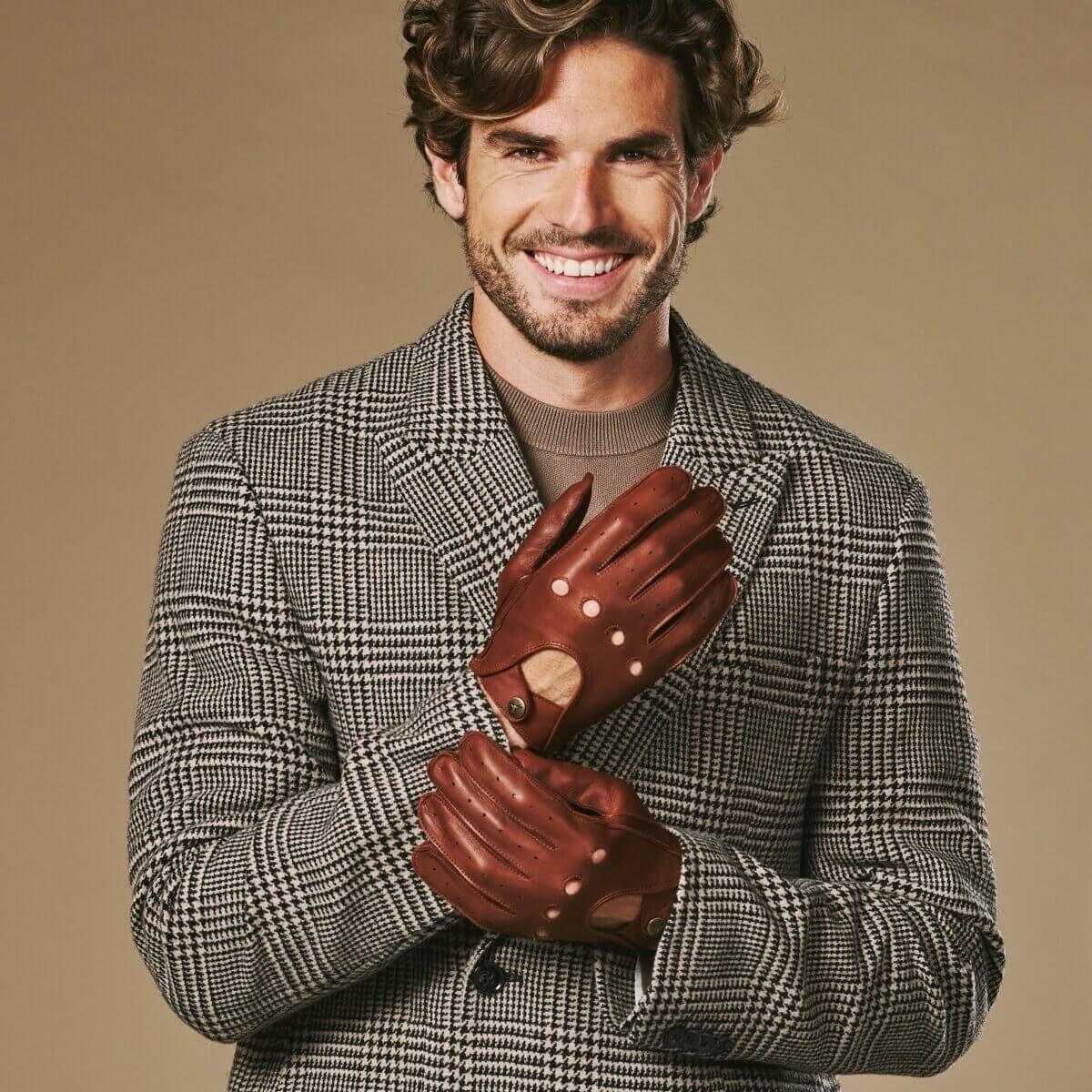 Gosling (cognac) – Classic men's lambskin driving gloves with touchscreen feature