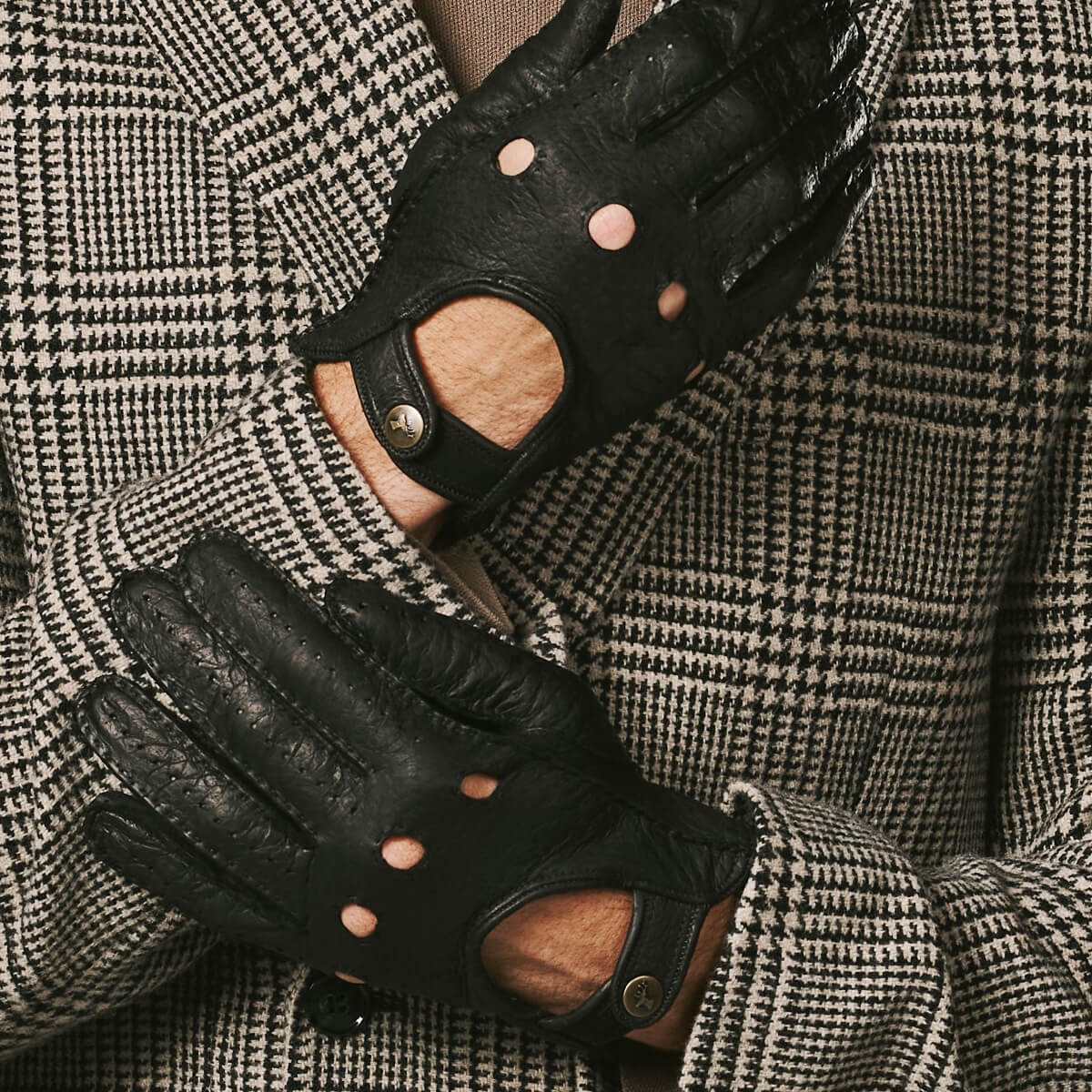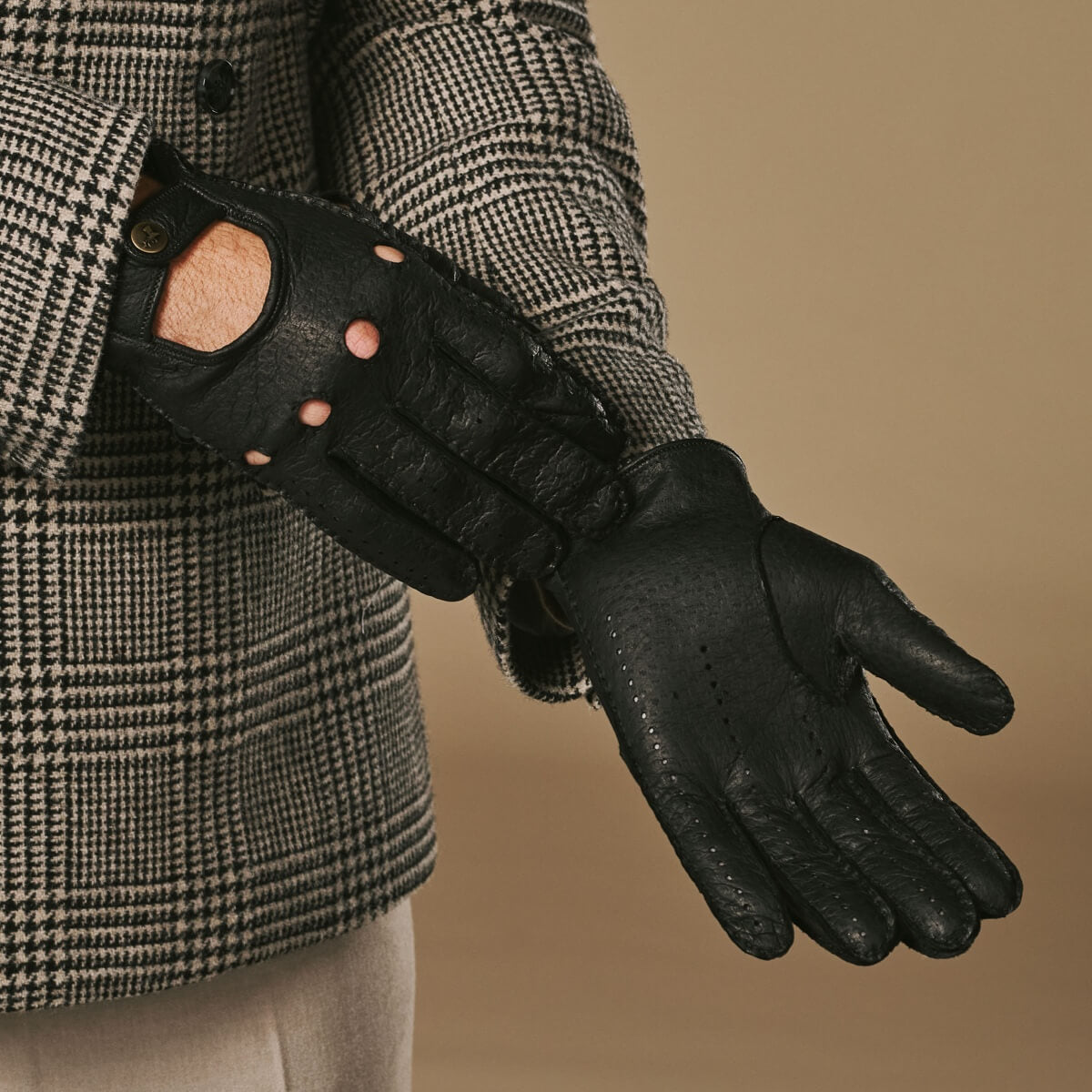 Silvio (black) - Exclusive peccary leather men's driving gloves