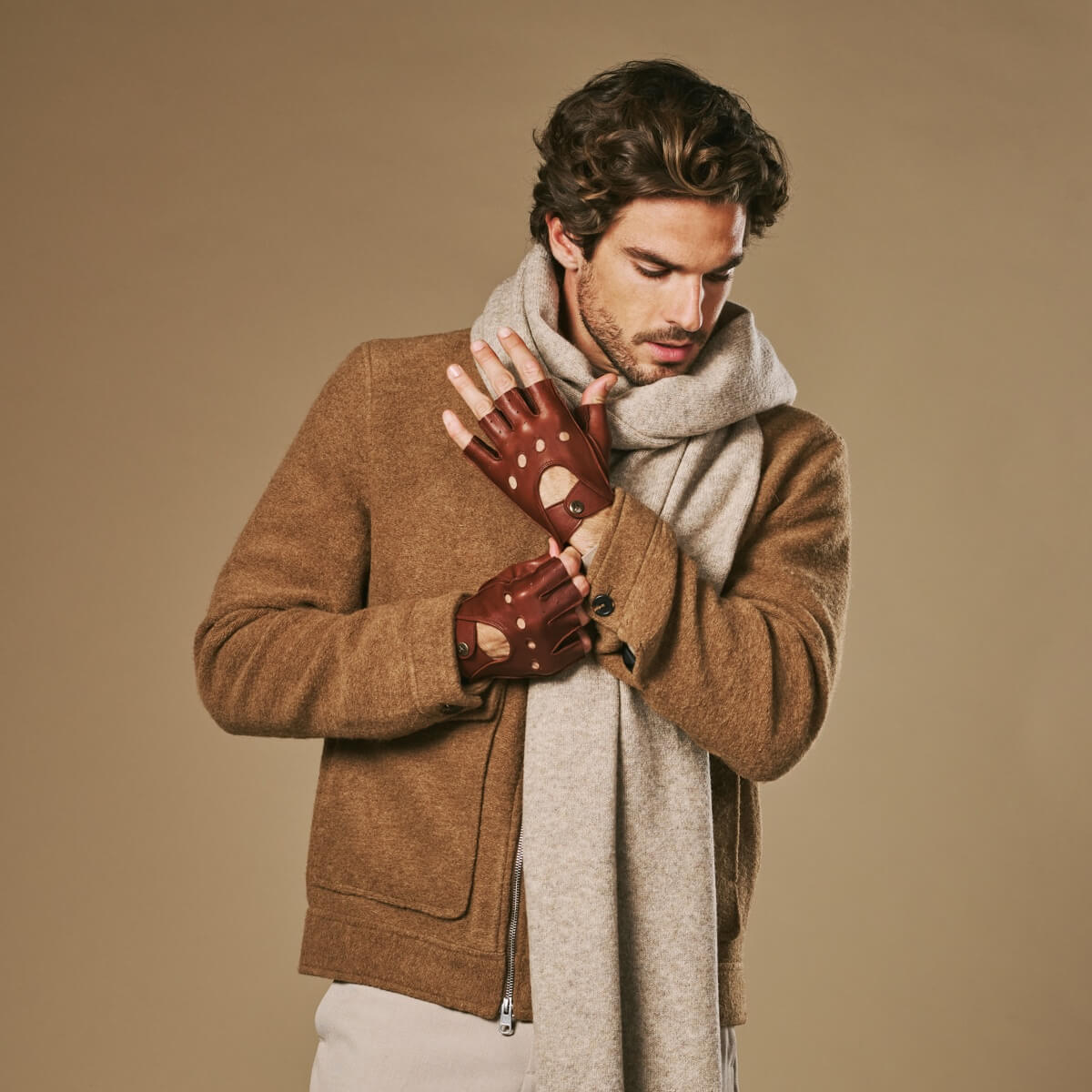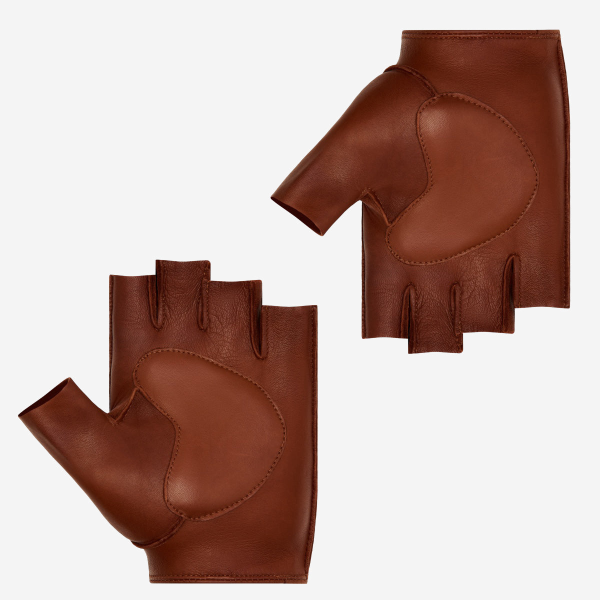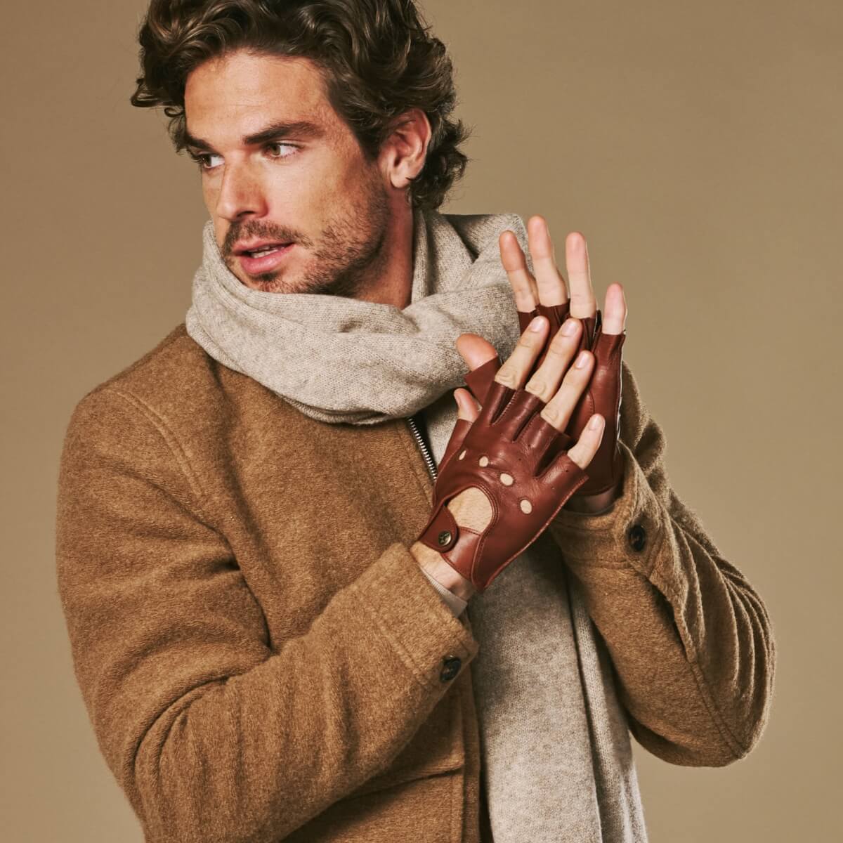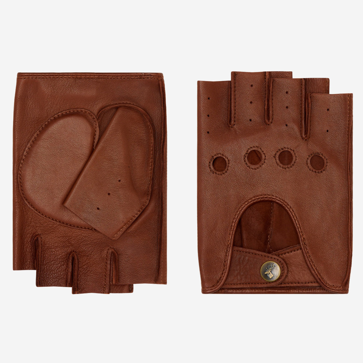 Liam (cognac) - Classic men’s fingerless lambskin driving gloves