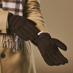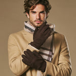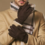Winston (dark brown) - Men’s nubuck leather gloves with thick primaloft lining and snap button closure