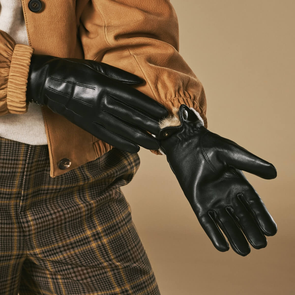 Rabbit fur lining: A plush brown rabbit fur lining offers exceptional warmth and comfort, keeping your hands cozy even on the coldest days.