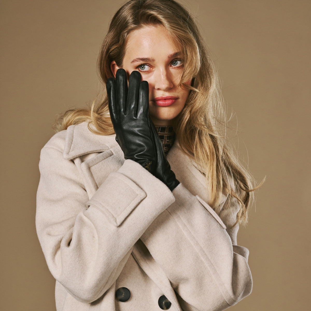 Lauren (black) - Women’s lambskin leather gloves with silk lining and touchscreen feature