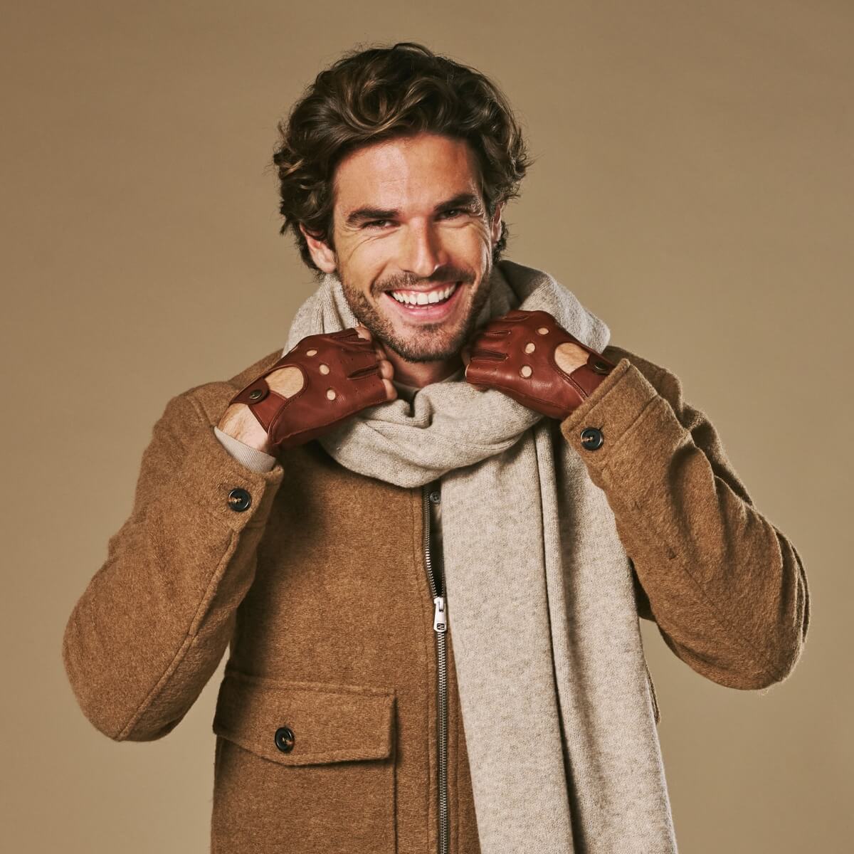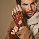 Liam (cognac) - Classic men’s fingerless lambskin driving gloves