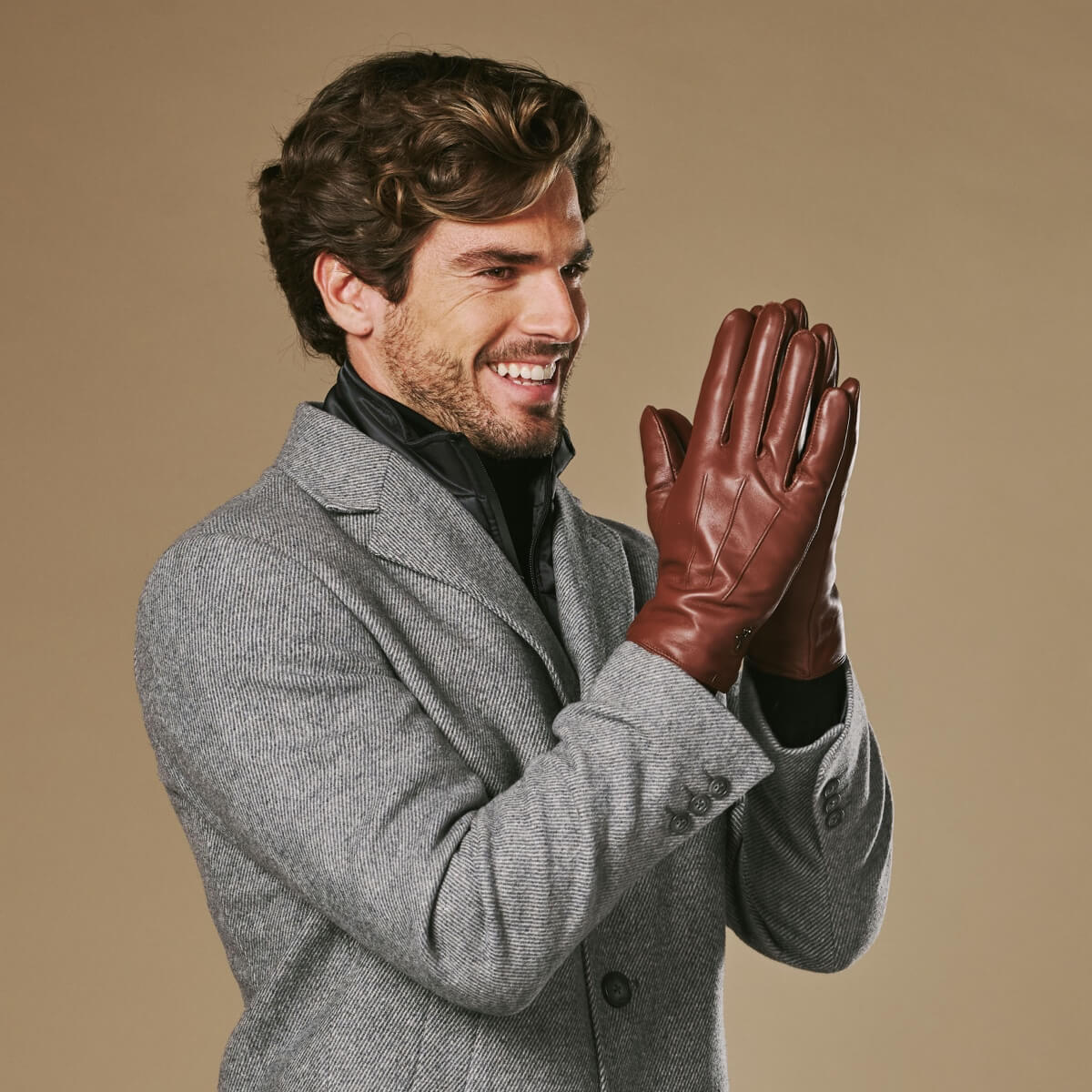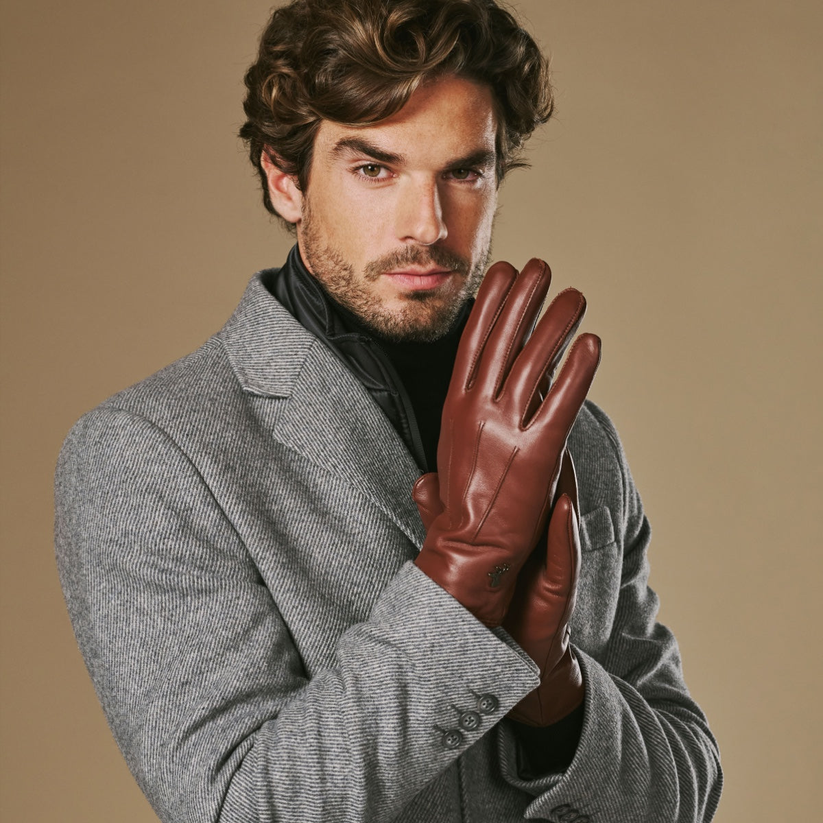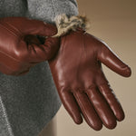 Alexander (brown) - Men’s lambskin leather gloves with luxurious rabbit fur lining and touchscreen feature