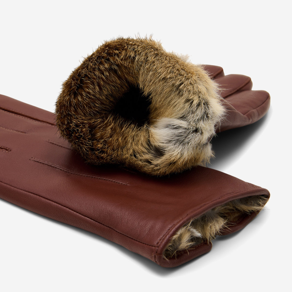 Rabbit fur lining: A plush brown rabbit fur lining offers exceptional warmth and comfort, keeping your hands cozy even on the coldest days.