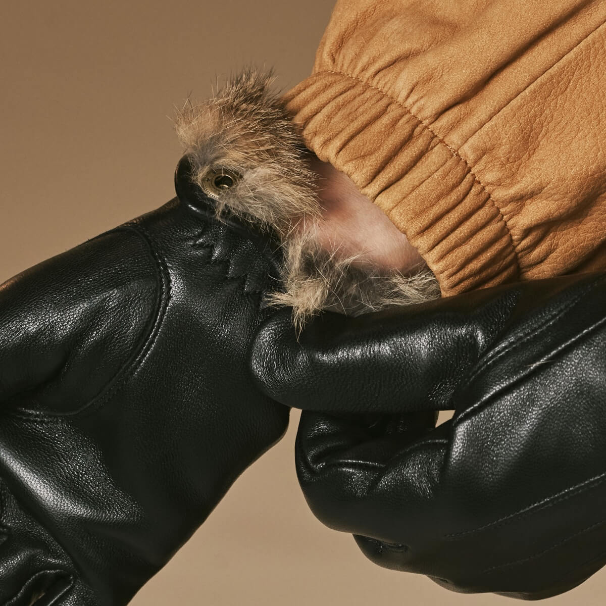 Rabbit fur lining: A plush brown rabbit fur lining offers exceptional warmth and comfort, keeping your hands cozy even on the coldest days.