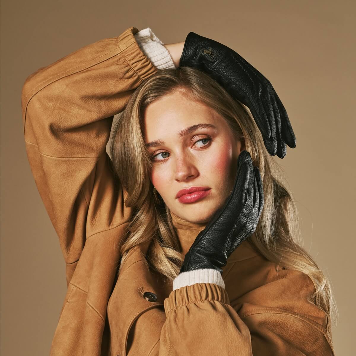 Sienna (black) – Luxurious American deerskin leather gloves with pure cashmere lining