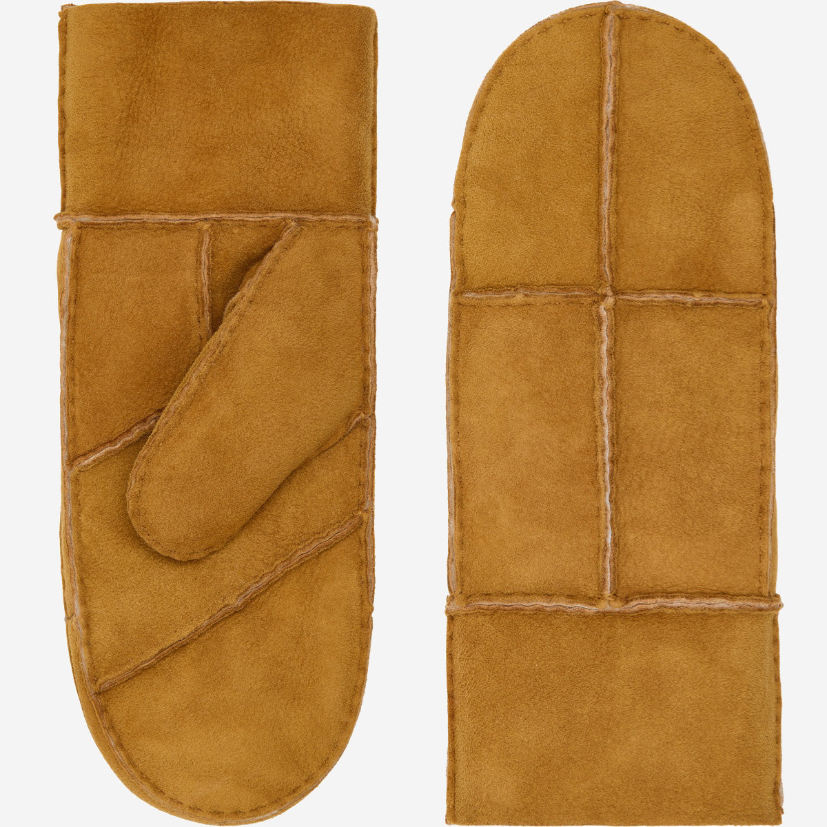 Timeless design: With their simple patchwork construction and natural camel color, these mittens combine durability with a classic winter look.