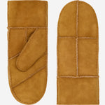 Veronica (camel) - Women’s patchwork sheepskin mittens with warm sheep fur lining